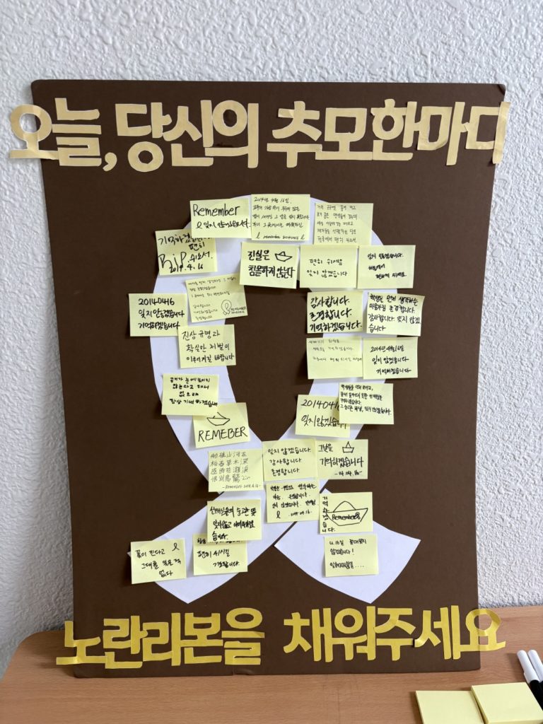 별도의 추모기간을 정하고, 추모 게시판을 만들어 희생자들을 위한 짧은 편지를 적었습니다.