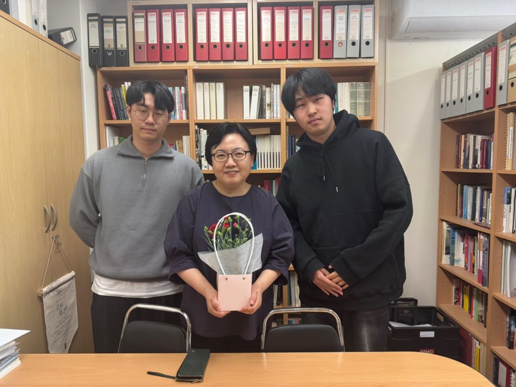 이다운 교수님(1, 2학년 지도), 고유경 교수님(2, 3학년 지도), 김석우 교수님(2, 4학년 지도)께 학년별 학생대표가 찾아뵙고